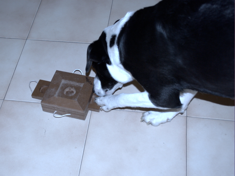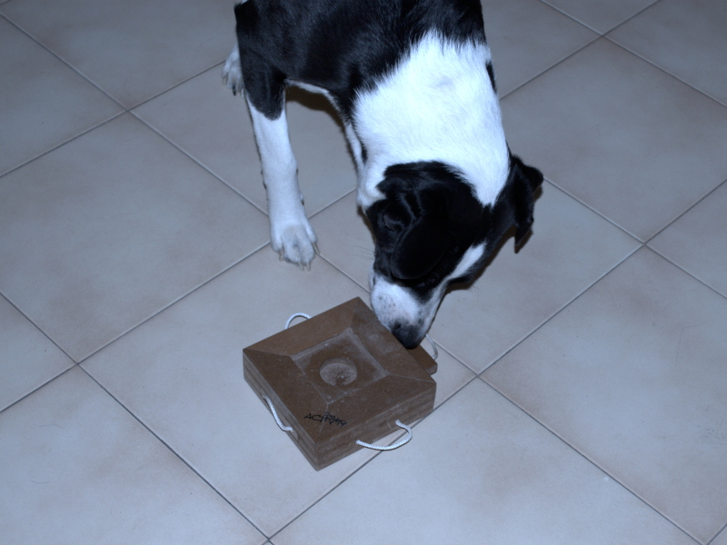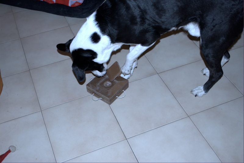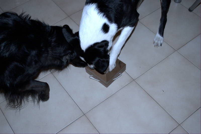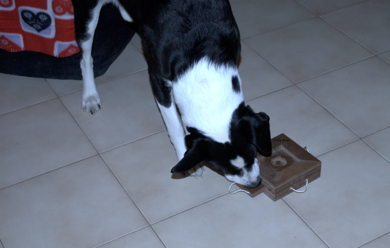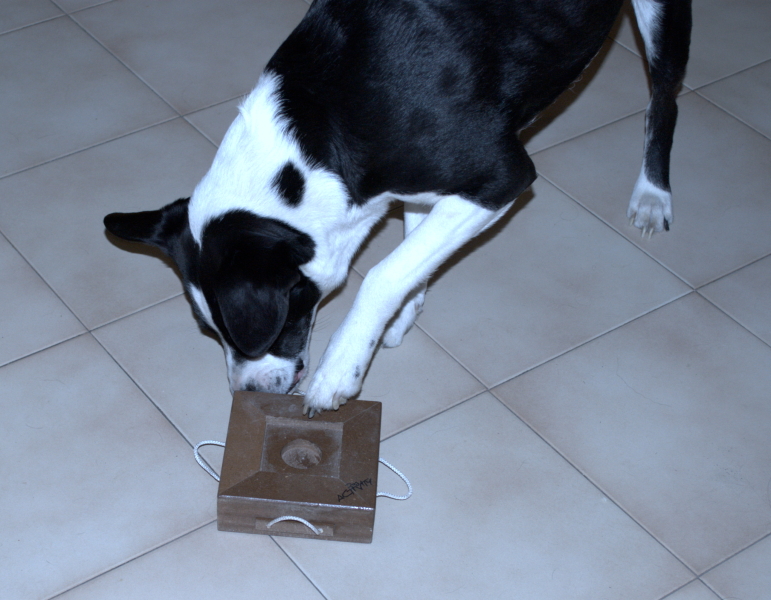 In queste foto Polpetta cerca i suoi premi per casa e si diverte con il suo primo gioco di attivazione mentale.